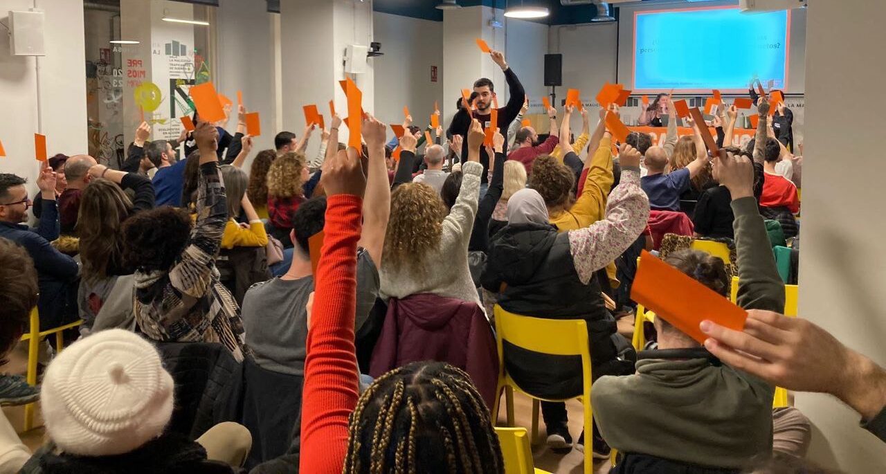 A continuación, se compartieron datos sobre cuentas y afiliaciones, con el objetivo de aumentar la transparencia de la organización para con sus afiliadas, a la vez que reforzar la importancia de nuestra independencia económica y de disponer de recursos propios. Para cerrar la sección de transparencia, la asamblea continuó con una presentación exhaustiva del organigrama del Sindicato y de sus itinerarios de participación, pensados para diferentes perfiles de afiliadas con distintas capacidades y tiempos.
